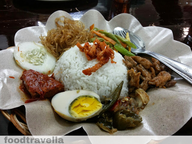 Saya dan adik sendiri memilih untuk menu nasi campurnya. Mirip dengan nasi kuningnya, pada menu nasi campurnya ini, juga terdiri dari banyak lauk/sayuran pendamping. Hampir semua lauk yg disajikan, cukup enak buat saya, tapi ada satu osengan yg menurut saya sedikit terlalu asin, tapi gak dominan sekali sih. jadi masih dalam batas kewajaran.